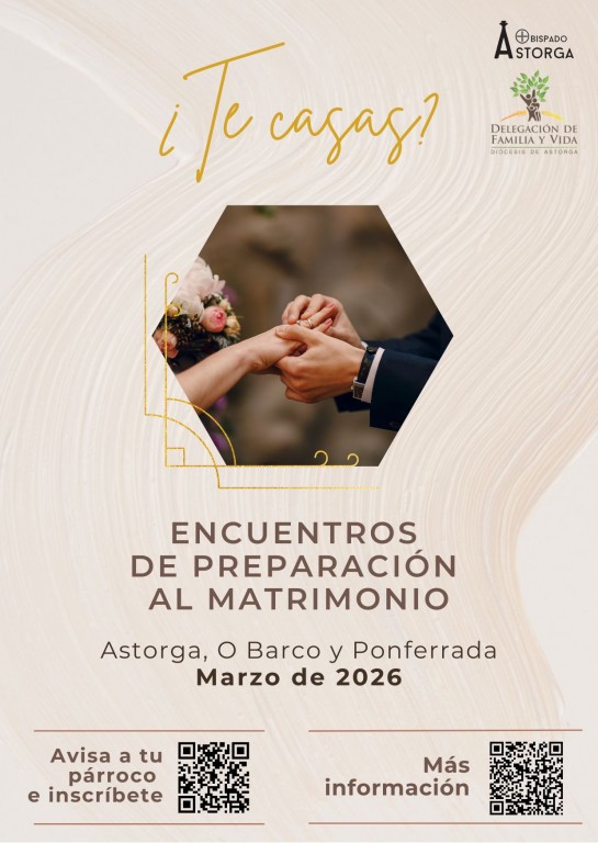 En la Diócesis de Astorga ofrecemos Encuentros de Preparación al Matrimonio (Astorga, O Barco y Ponferrada). Un espacio sencillo y cercano para preparar la boda por la Iglesia con sentido.