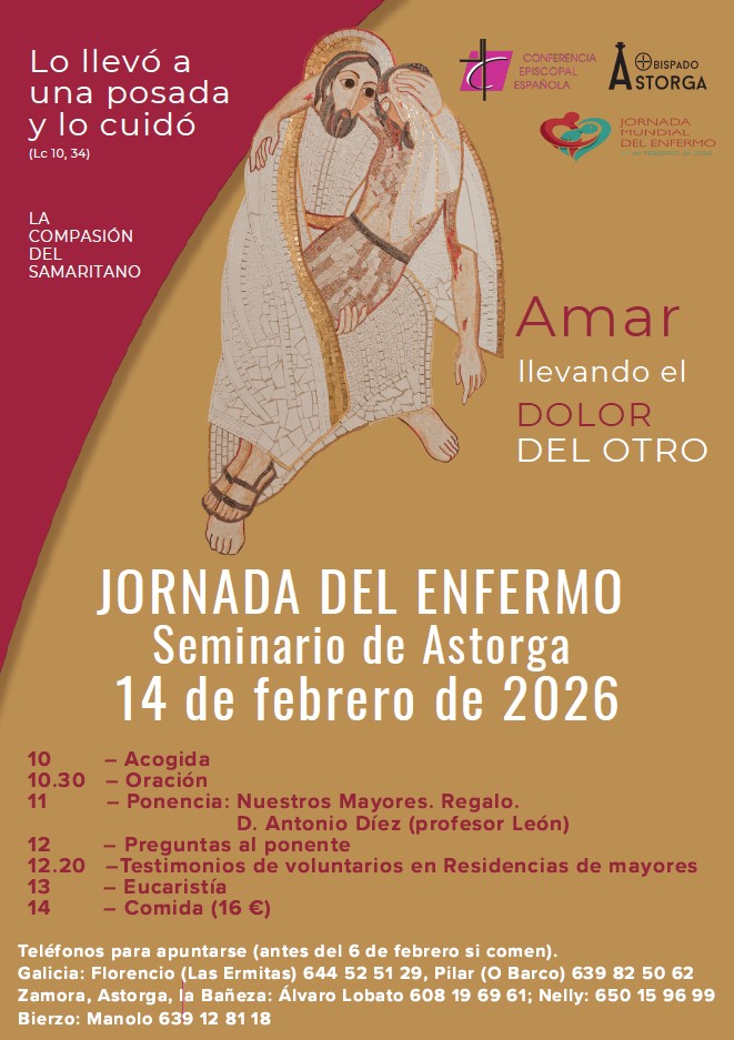 La Jornada Mundial del Enfermo, que la Iglesia celebra cada año el 11 de febrero, coincidiendo con la fiesta de la Virgen de Lourdes, tiene este año como lema «La compasión del samaritano», elegido por el Papa León XIV. Inspirado en la parábola del Buen Samaritano, el lema invita a vivir una compasión que no se quede en palabras o sentimientos, sino que se traduzca en gestos concretos de cercanía, cuidado y solidaridad, especialmente con quienes sufren la enfermedad en contextos de fragilidad, pobreza, aislamiento y soledad.