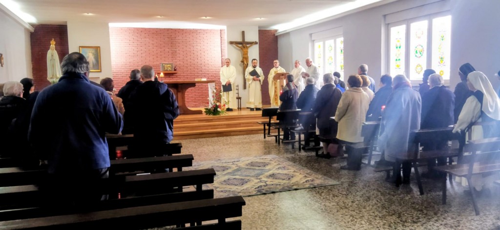 Religiosos y religiosas procedentes de las distintas zonas de la diócesis, se dieron cita para compartir una jornada de oración, fraternidad y acción de gracias por el don de la vida consagrada en la Iglesia. El encuentro comenzó con la celebración de la Eucaristía junto a la comunidad de María y José y de la Misericordia de Fabero. La celebración estuvo presidida por el administrador diocesano, don Francisco Javier Gay, y contó con la participación del delegado diocesano para la Vida Consagrada, don Juan José Prieto Villoria, así como del párroco de Fabero y otros sacerdotes de nuestra iglesia particular.