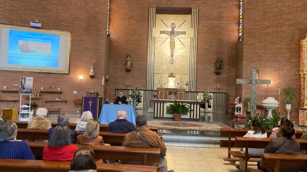 Tras un primer momento de bienvenida e invocación al Espíritu Santo, tuvo lugar la meditación titulada "Dios nos sale al encuentro", en la que don Javier propuso contemplar cómo Jesús se acerca a distintas situaciones vitales: la de una persona alejada, representada en la samaritana; la de un hombre religioso, Nicodemo; y la de quienes ya han sido llamados y comprometidos con Él, los apóstoles. La primera parte de la reflexión se centró en el encuentro de Jesús con la samaritana (Jn 4, 1-42), presentado como un camino de conversión que parte del encuentro —"Dame de beber"—, continúa en el diálogo —"Si conocieras el don de Dios"— y conduce al reconocimiento —"Veo que tú eres un profeta"— hasta desembocar en el anuncio: "Me ha dicho todo lo que he hecho". En un segundo momento, la meditación se detuvo en el diálogo con Nicodemo (Jn 3, 1-21), una invitación a nacer de nuevo. A partir de este pasaje, se profundizó en el encuentro —"Rabí, sabemos que has venido de parte de Dios como maestro"—, el anuncio —"El que no nazca de nuevo no puede ver el Reino de Dios"— y la duda expresada por Nicodemo: "¿Cómo puede suceder esto?", que abre a la comprensión de las realidades del cielo y del misterio de la elevación del Hijo del Hombre. La tercera parte se centró en el encuentro del Resucitado con los apóstoles (Jn 21, 1-25), contemplando el paso de la vuelta al pasado —"Me voy a pescar"— a la irrupción de Cristo —"Echad la red a la derecha de la barca"—, el descubrimiento —"Es el Señor"— y la misión confiada a Pedro en el diálogo: "Simón, hijo de Juan, ¿me amas?".