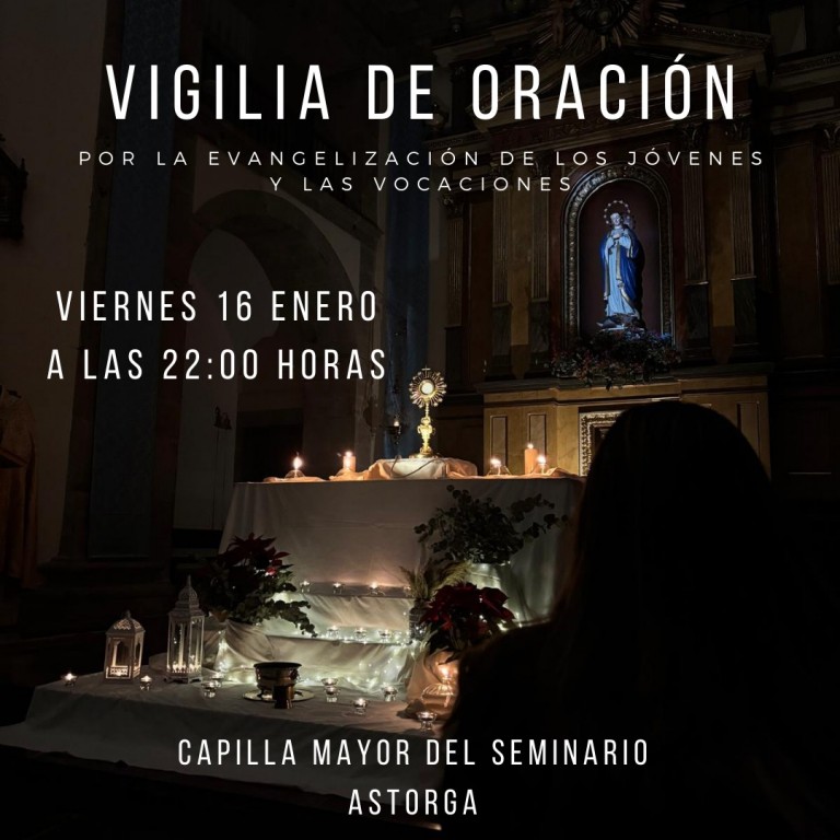 Tras el parón navideño, desde las Delegaciones Diocesanas de Pastoral Juvenil y Vocacional, invitamos a todas las personas que lo deseen a una nueva Vigilia de Oración, que será la primera del recién estrenado 2026. Tendrá lugar este Viernes, día 16 de enero, a las 22:00 horas en la Capilla Mayor del Seminario de Astorga.